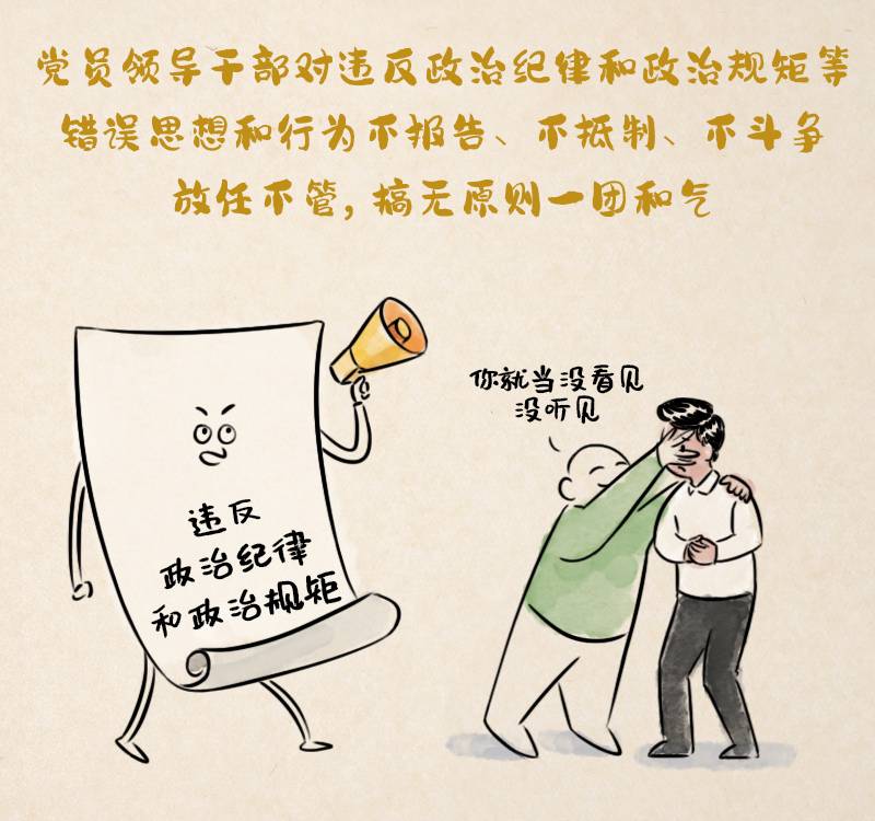 第七十五條 黨員領(lǐng)導(dǎo)干部對違反政治紀(jì)律和政治規(guī)矩等錯誤思想和行為不報告、不抵制、不斗爭,放任不管,搞無原則一團(tuán)和氣,造成不良影響的,給予警告或者嚴(yán)重警告處分;情節(jié)嚴(yán)重的,給予撤銷黨內(nèi)職務(wù)或者留黨察看處分。