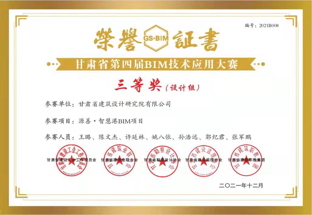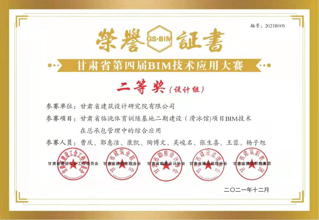 日前,甘肅省建設(shè)工會工作委員會、甘肅省建筑業(yè)聯(lián)合會、甘肅省勘察設(shè)計協(xié)會、甘肅省建設(shè)監(jiān)理協(xié)會、甘肅省建筑職教集團(tuán)聯(lián)合舉辦的“2021年甘肅省職工職業(yè)技能競賽暨甘肅省第四屆BIM技術(shù)應(yīng)用大賽”評選結(jié)果揭曉,甘肅省城鄉(xiāng)規(guī)劃設(shè)計研究院有限公司“BIM技術(shù)正向設(shè)計在蘭州中川國際機(jī)場三期擴(kuò)建工程航站區(qū)附屬用房工程項目中的應(yīng)用”獲得“BIM技術(shù)應(yīng)用作品征集”比賽設(shè)計組一等獎;甘肅省建筑設(shè)計研究院有限公司“甘肅省臨洮體育訓(xùn)練基地二期建設(shè)(滑冰館)項目BIM技術(shù)在總承包管理中的綜合應(yīng)用”獲得二等獎,“緣善智慧港BIM項目”獲得三等獎;甘肅省建設(shè)監(jiān)理有限責(zé)任公司李燕燕獲得“BIM技術(shù)技能比賽”三等獎。