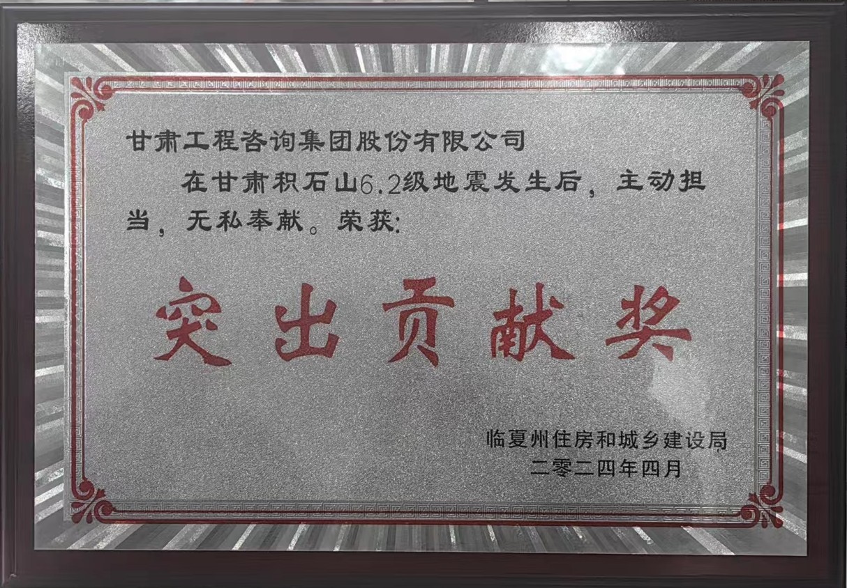 在甘肅積石山6.2級(jí)地震后,甘肅工程咨詢集團(tuán)主動(dòng)擔(dān)當(dāng),無私奉獻(xiàn),在應(yīng)急救援、災(zāi)后重建工作中表現(xiàn)突出,被臨夏州住房和城鄉(xiāng)建設(shè)局授予“突出貢獻(xiàn)獎(jiǎng)”。