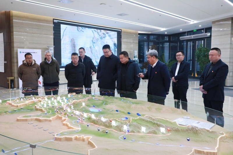 李文生一行實(shí)地察看了省水電設(shè)計(jì)院魚兒溝科研設(shè)計(jì)基地,現(xiàn)場觀摩了甘肅省水網(wǎng)建設(shè)沙盤演示。