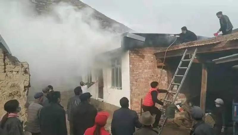 聽到村民們的呼救聲,正在村口疫情防控監(jiān)測點值守的幫扶工作隊隊員、包村干部與鎮(zhèn)領(lǐng)導(dǎo)、村“兩委”干部及志愿者一起,第一時間沖向了火災(zāi)現(xiàn)場,實施開展撲救工作?,F(xiàn)場火勢兇猛,盡管眾人一起用水傾澆,卻仍未阻止火勢蔓延。瞬間,屋頂?shù)臋M梁也燒著了,發(fā)出噼啪的響聲,房頂隱約在搖晃,可大家依然奮不顧身地救火,甚至有人沖上了危險的屋頂。