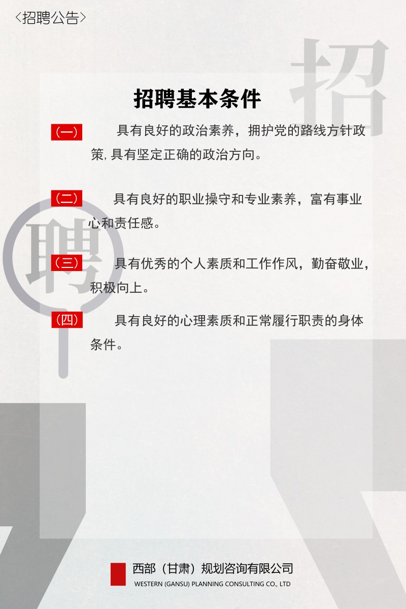 西部(甘肅)規(guī)劃咨詢有限公司2023年招聘公告