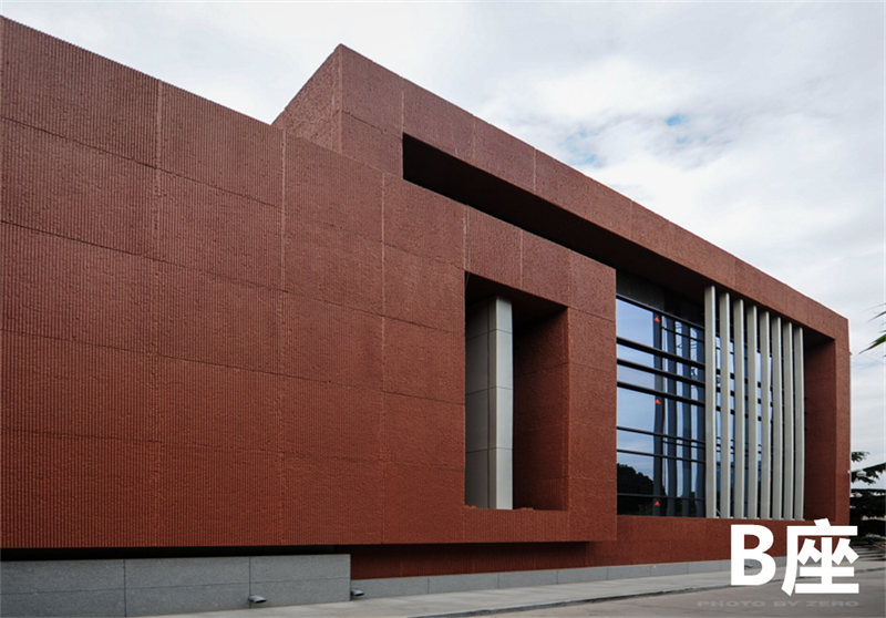 “A”“B”雙樓,猶如一部翻開的巨著:A座以時(shí)尚、張揚(yáng)的冰灰色為主,整齊規(guī)劃的落地窗宛如印刷方格,爬于中間的三只蜜蜂正抖動羽翼、簇頭采蜜,恰如勤奮的讀者人書寫著激越昂揚(yáng)的現(xiàn)代畫卷。