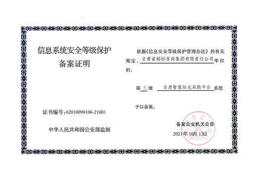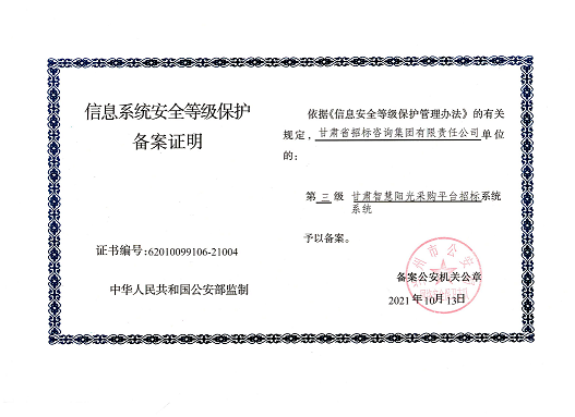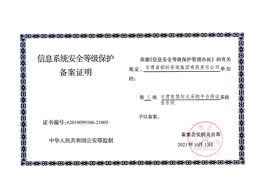 近日,由招標(biāo)咨詢集團(tuán)負(fù)責(zé)開發(fā)建設(shè)的甘肅智慧陽光采購平臺(tái)系統(tǒng),以及甘肅智慧陽光采購平臺(tái)采購網(wǎng)系統(tǒng)、大數(shù)據(jù)監(jiān)管系統(tǒng)、招標(biāo)系統(tǒng)、保證金系統(tǒng)、專家管理系統(tǒng)通過國家三級(jí)等保認(rèn)證,系統(tǒng)管理安全能力獲得業(yè)界最高標(biāo)準(zhǔn)。