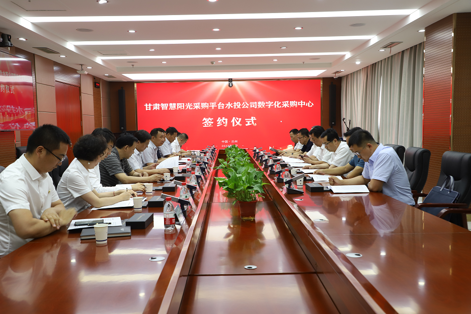 7月6日下午,甘肅省招標咨詢集團有限責任公司與甘肅省水務投資有限責任公司舉行甘肅智慧陽光采購平臺水投公司數(shù)字化采購中心簽約儀式。甘肅水務集團黨委書記、董事長徐崇鋒,招標咨詢集團黨委書記、董事長牛茺出席簽約儀式并致辭。甘肅水務集團黨委副書記、董事、總經(jīng)理汪棟與招標咨詢集團黨委副書記、總經(jīng)理孫有仙代表雙方簽約。甘肅水務集團黨委委員、副總經(jīng)理王玉和,招標咨詢集團黨委副書記、監(jiān)事會主席、工會主席巨有成,黨委委員、紀委書記鄭志峰,黨委委員、副總經(jīng)理李蘭軍,甘肅水務集團及招標咨詢集團相關部門負責人參加簽約儀式。