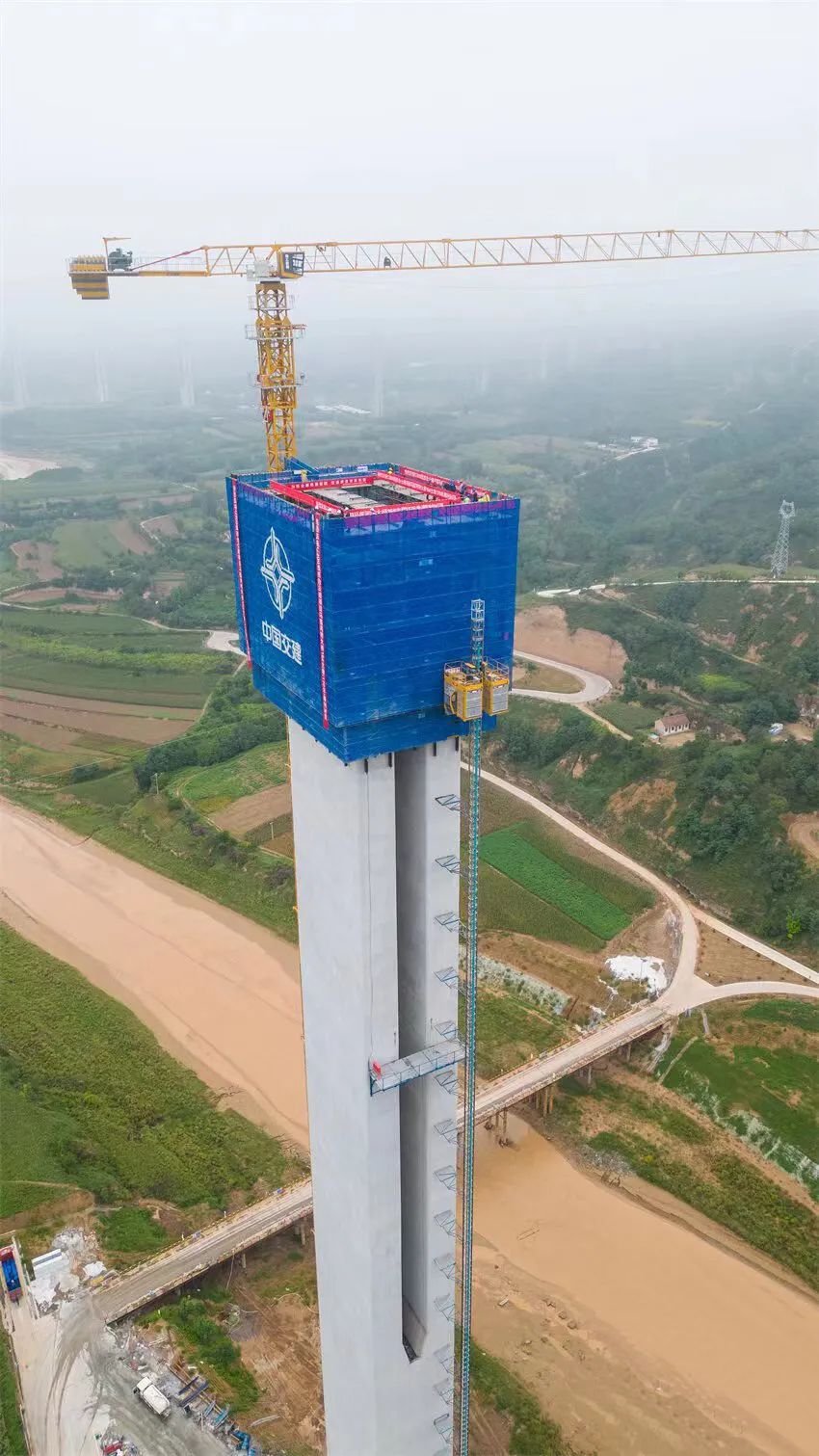 交通監(jiān)理公司代建及監(jiān)理的國(guó)內(nèi)黃土地區(qū)跨度最大、墩高最高、聯(lián)跨最長(zhǎng)矮塔斜拉橋——馬蓮河特大橋最高主墩成功封頂
