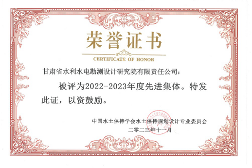 11月5日至7日,中國水土保持學(xué)會2023年年會暨學(xué)術(shù)研討會在蘭州召開。省水電設(shè)計院榮獲中國水土保持學(xué)會2022-2023年度“先進(jìn)集體”稱號,水保設(shè)計咨詢公司王向明榮獲“先進(jìn)個人”稱號。1篇論文獲優(yōu)秀論文獎。