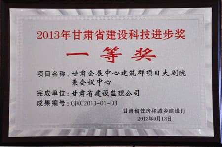 2013年甘肅省建設(shè)科技進(jìn)步獎(jiǎng)一等獎(jiǎng)
